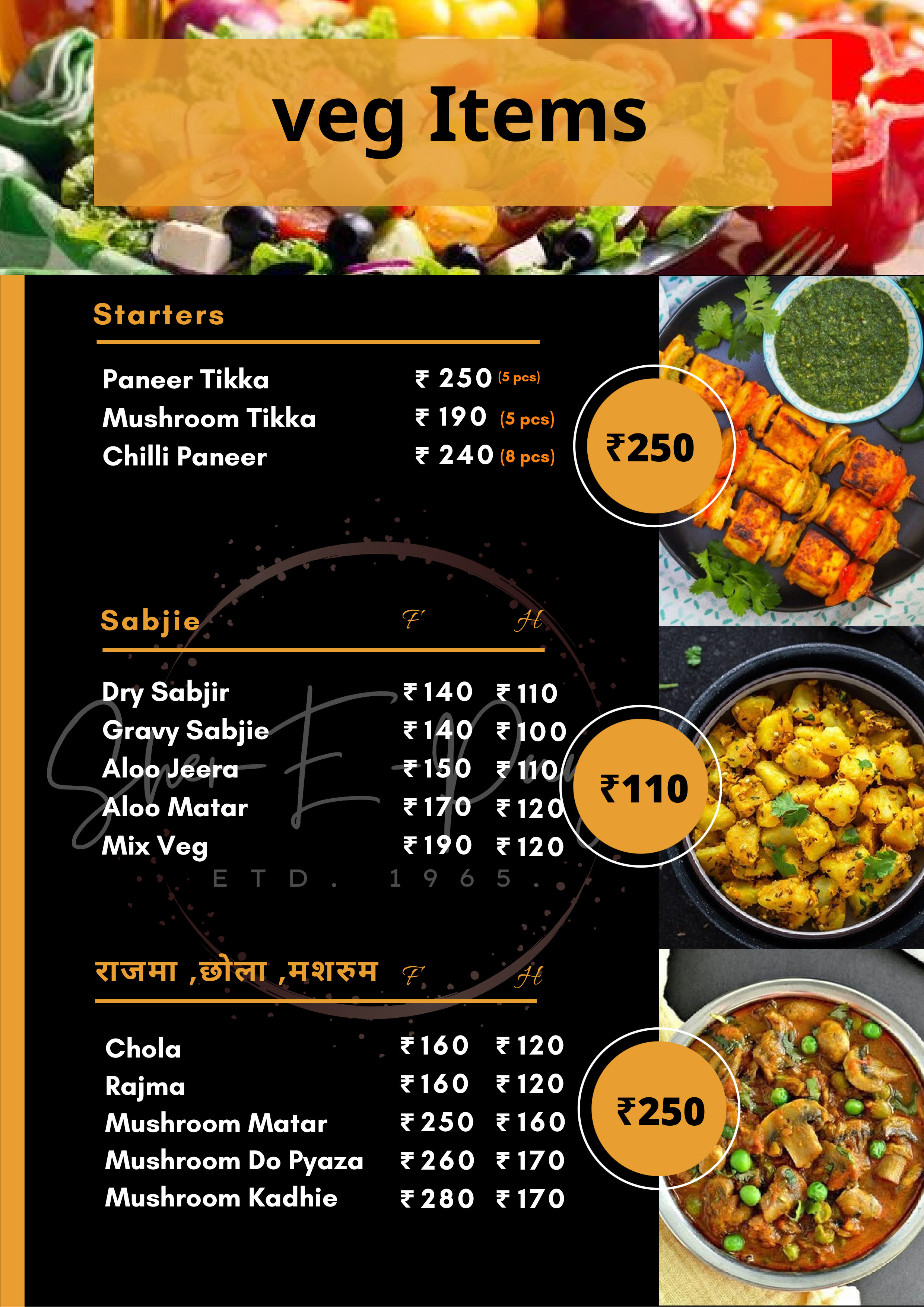Sher-E-Punjab Hotel Since 1965 is a trusted name for authentic Punjabi and North Indian cuisine. For generations, we have been serving delicious food prepared with traditional recipes, rich spices, and fresh ingredients.